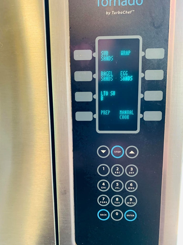 Toast, brown, and crisp food up to twelve times faster than traditional cooking methods with this TurboChef Tornado 2 high-speed commercial convection microwave oven! By using a combination of impingement and microwave cooking technology, this compact model allows for on-demand cooking without the space, energy, and food-holding requirements of a larger oven. Whether you need to do something simple like melt the cheese on a sandwich or reheat entrees, or even if you'd like to cook full chicken breasts, this unit is sure to get the job done! Thanks to the integral catalytic converter system, this oven is able to quickly produce delicious food without the need for a large, expensive hood system. This effectively makes installation a breeze while providing a fine solution for operations where space is at a premium such as concession stands, food kiosks, convenience stores, and delis. It features a smart menu system that holds 128 programmed recipe settings for easy, efficient use. To help ensure long-lasting performance, it features built-in self-diagnostics for component / performance monitoring. A 208/240V electrical connection is required for operation. Overall Dimensions: Width: 26" Depth: 25 4/5" Height: 23" Interior Dimensions: Width: 15 1/2" Depth: 14 7/10" Height: 8" Capacity: 1.05 cu. ft.