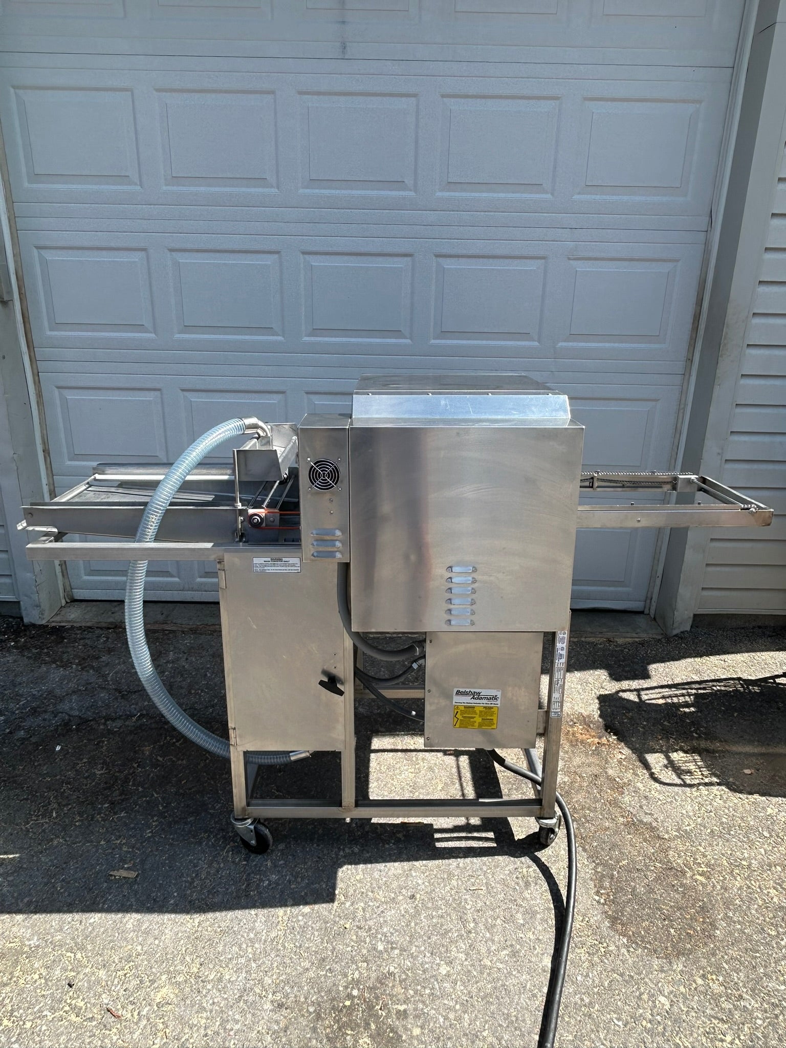 Glaze is pumped up to a dispenser which coats each donut with a 1/8 thick curtain of glaze as they pass through. For iced donuts, the flow of glaze is turned off, and donuts can be iced on a Belshaw H&I-2 or H&I-4 icer.