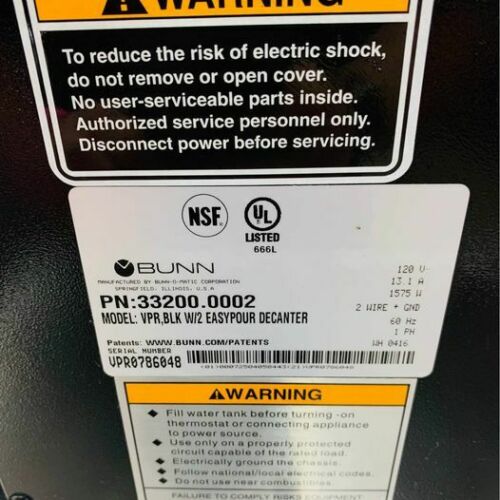 Bunn VPR, BLK-W2 Decanter Coffee Maker 120v