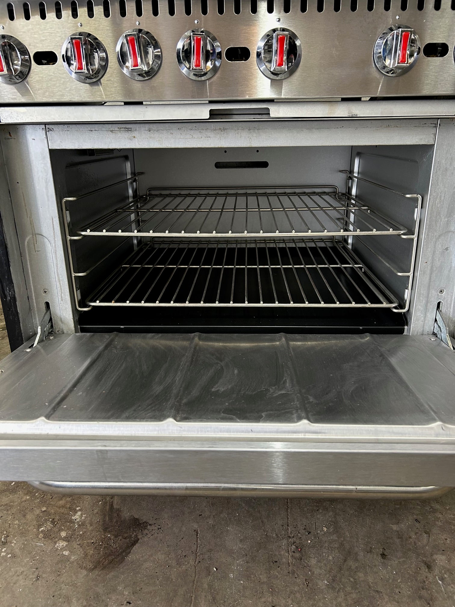 This 36" range features a rugged stainless steel front and durable aluminum sides that are not only designed to provide you with years of trouble-free performance, but are also extremely simple to clean! The cast iron gates lift off for a simple, thorough cleansing while the deep pull-out crumb tray further expedites end-of-day cleanup. And, thanks to the porcelainized bottom, maintaining a spotless oven is easier than ever. 6" adjustable stainless steel legs ensure that your unit is level and allows you to easily clean underneath for a safe and sanitary kitchen. A propane gas connection is required for operation.
