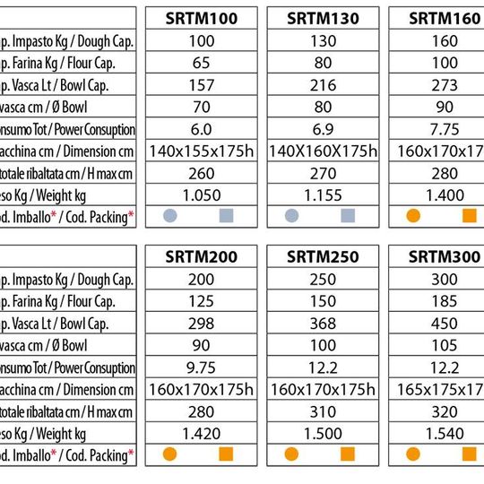 Top of the range of spiral mixers. Born for the US market and therefore for doughs with high gluten content flours or for pasta with low percentage of liquids. Reinforced machine from all points of view, both as regards the carpentry and as regards the components. Equipped with 2 motors, a special transmission to reduce effort, increased spiral at the end, it is possible to mount larger motors in some models. The automatic self-tipping spiral mixer allows you to overturn a spiral mixer with a very small footprint; while maintaining all the criteria of robustness and functionality. It therefore reduces the working times of the dough and facilitates its unloading, by means of the hydraulic overturning system.