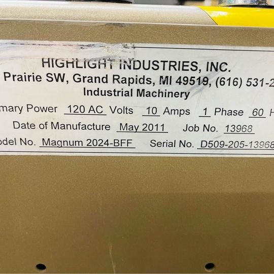 Highlight Ind. Magnum Model 2024-BFF Bottom Flap Folder Case Sealer Works Great!