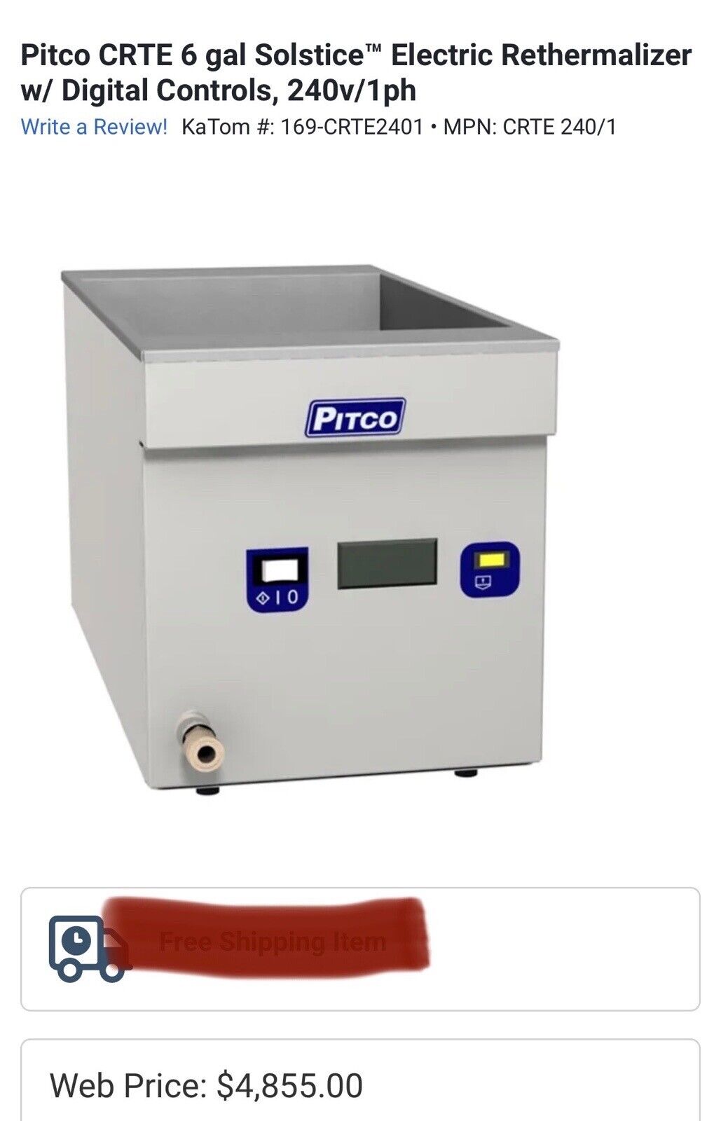 Pitco CRTE 6 gal Solstice™ Electric Rethermalizer w/ Digital Controls, 240v/1ph