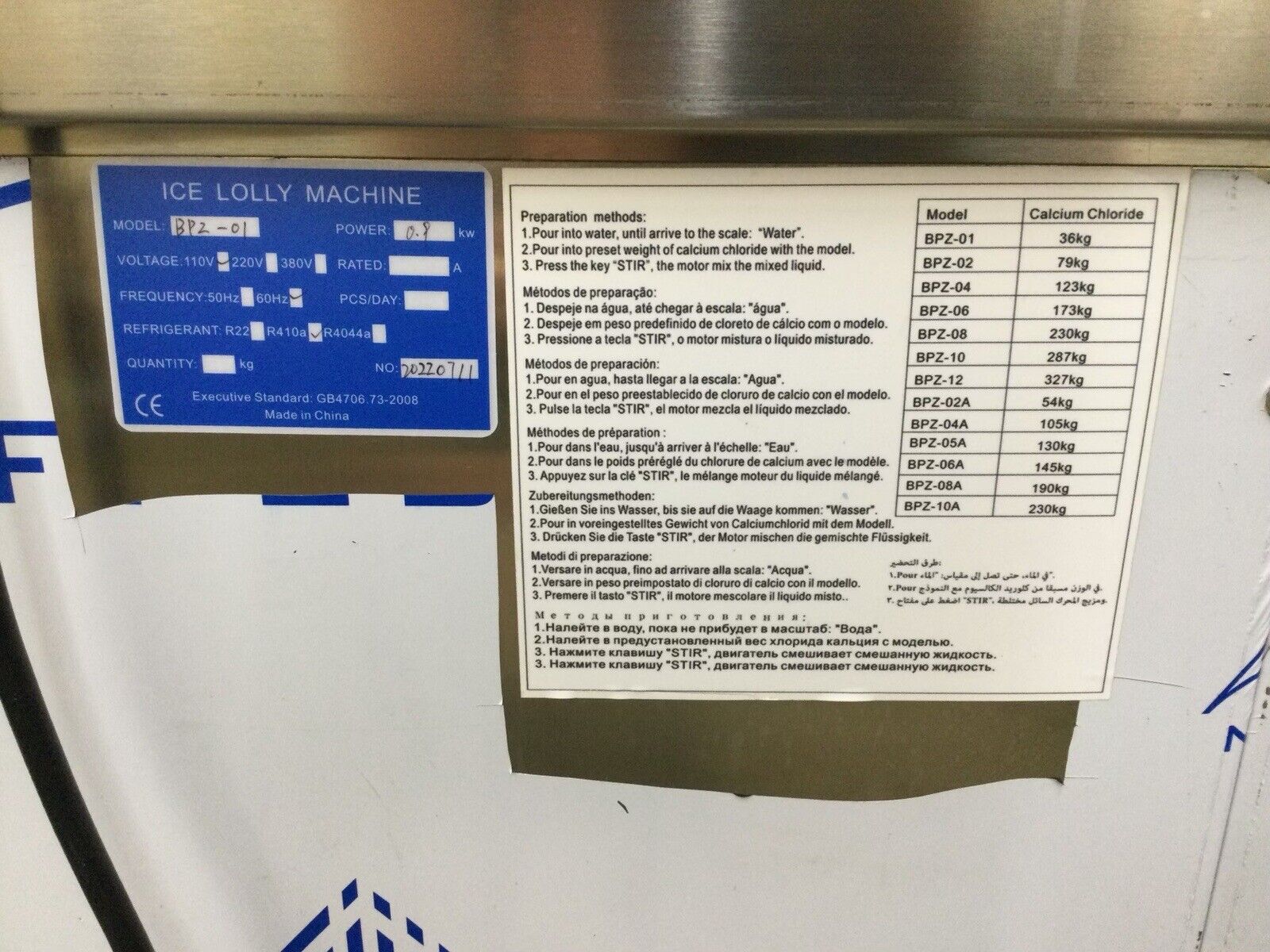 Popsicle Maker Antifreeze Food Grade for 20 Gal. BPZ-01 (NEW S&D).