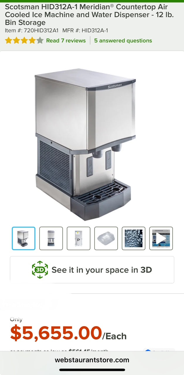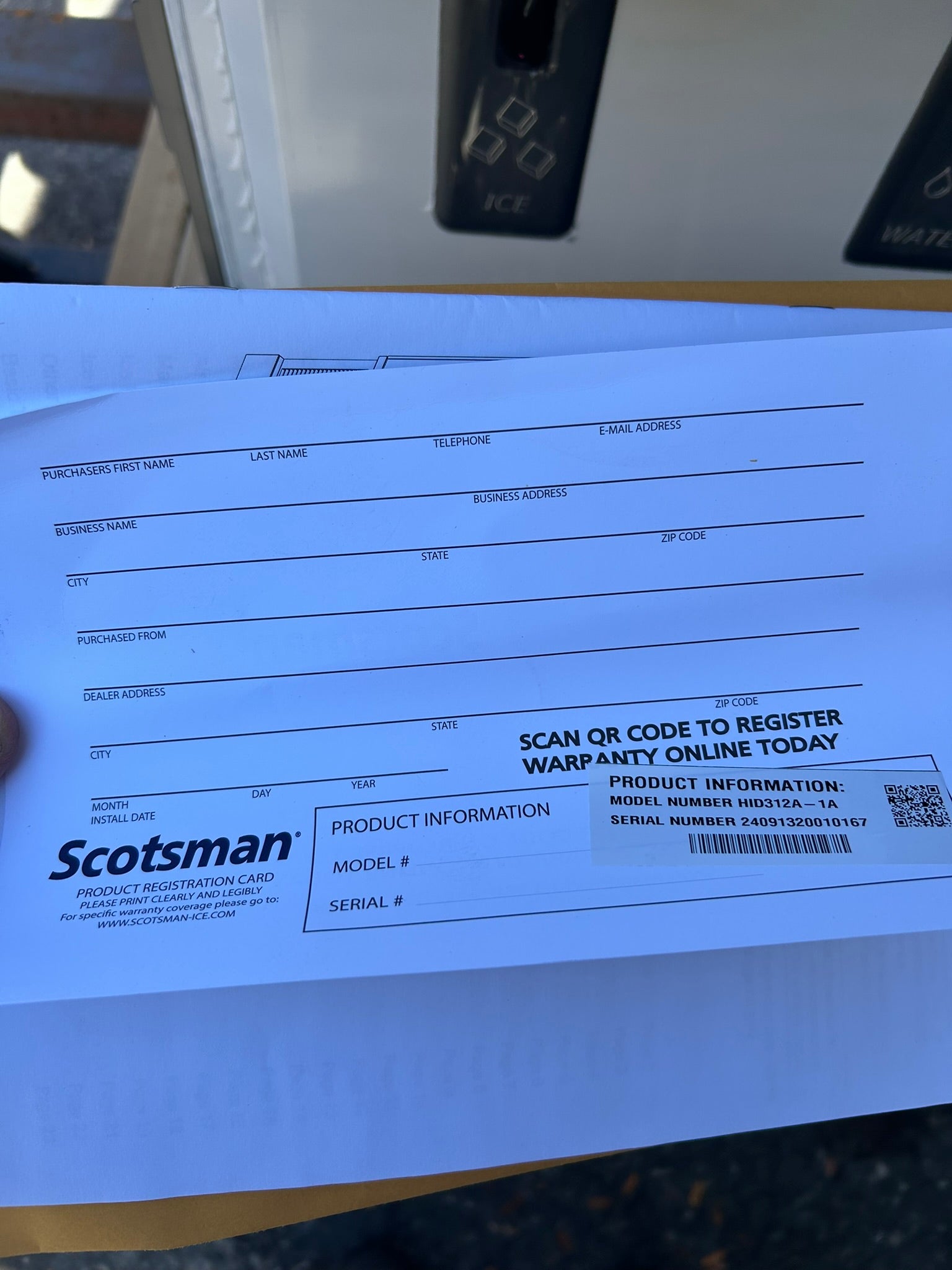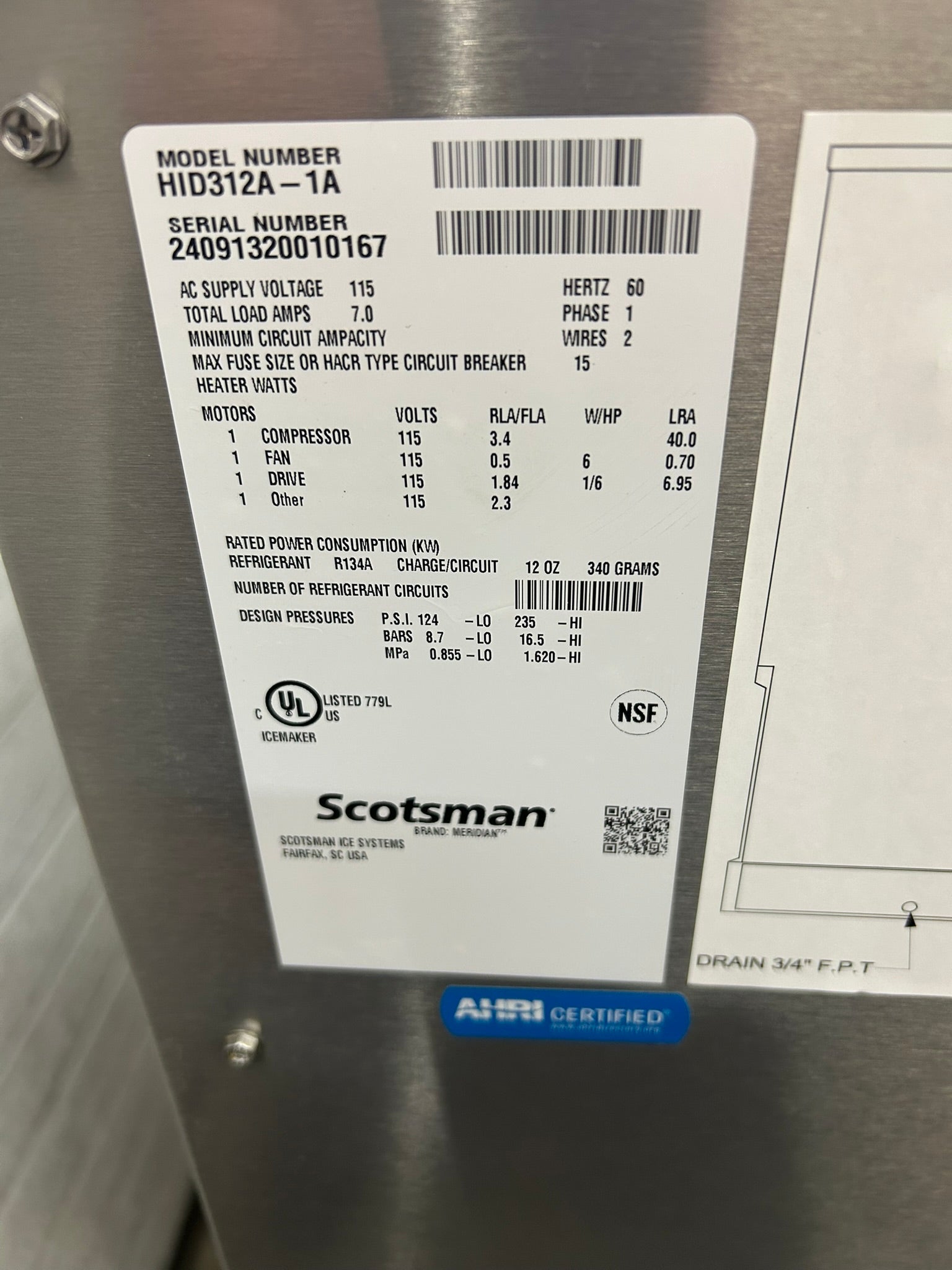 Scotsman HID312A-1A Air Cooled Nugget Ice Maker/H20 Dispenser New Out of Box