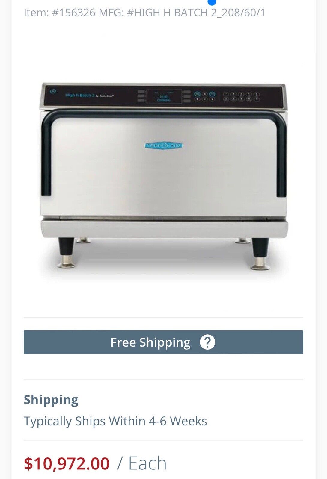 Turbochef 2019 HIGH H BATCH 2 Ventless Rapid Cook Oven, 208V 1-ph 5000W Working!.