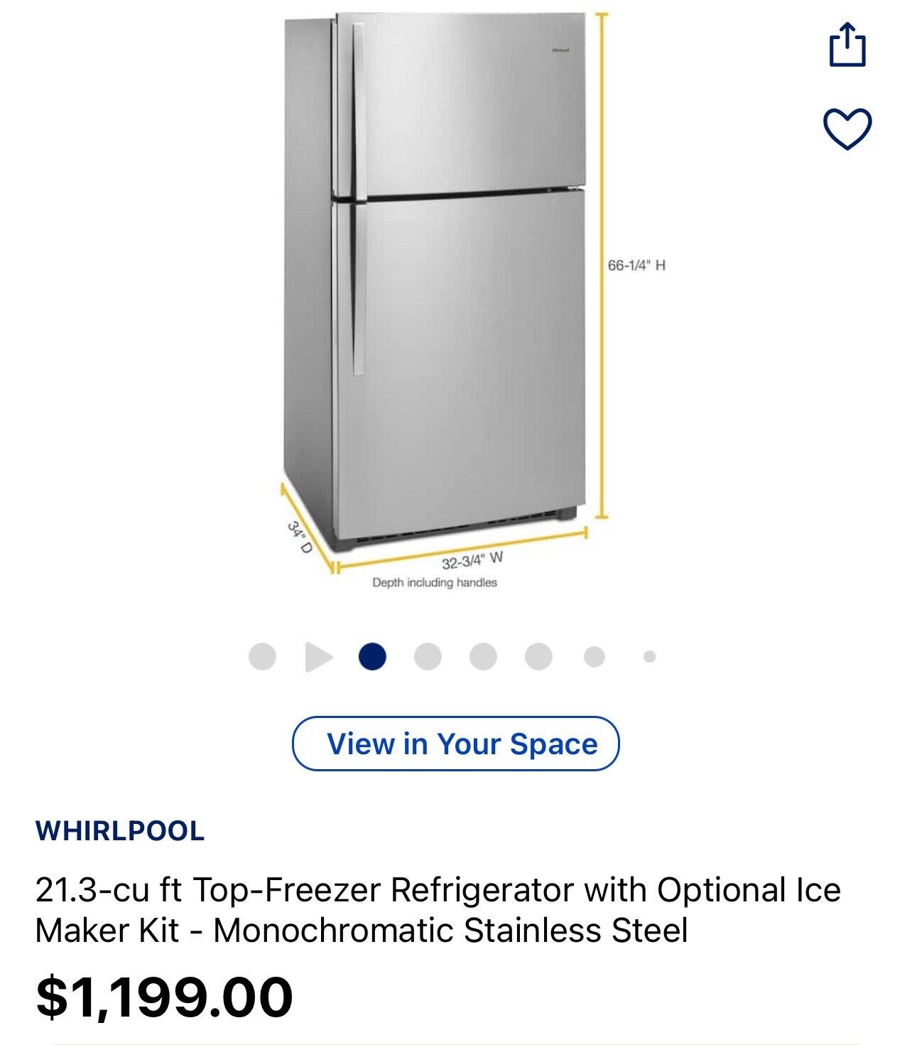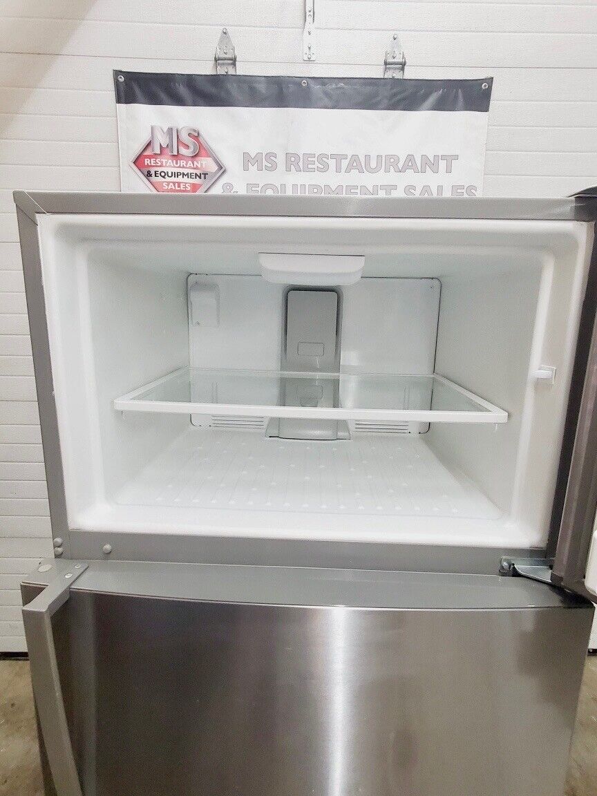Whirlpool 21.3 cu. ft. Top Freezer Refrigerator in Monochromatic Stainless Steel.